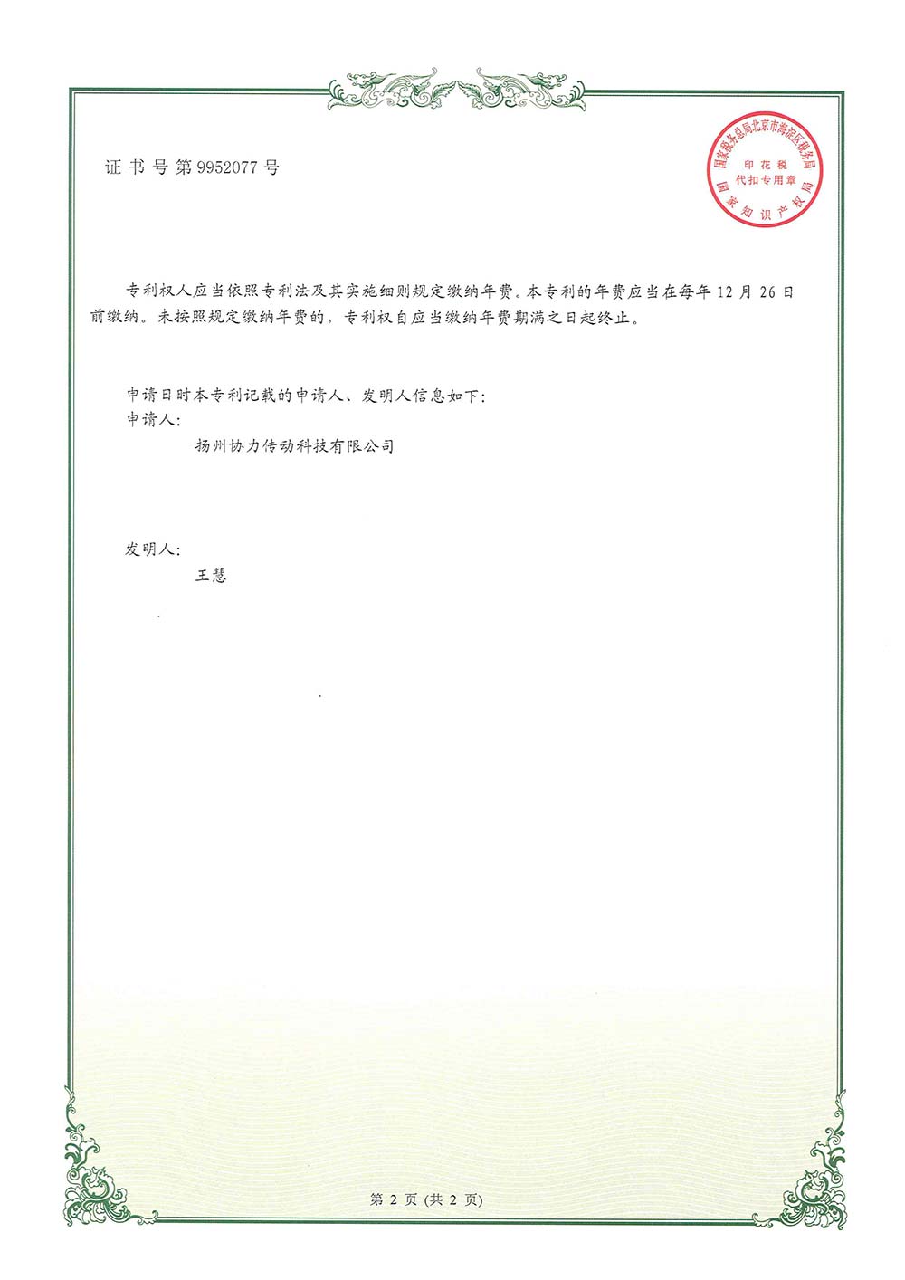 > 一種低噪定距型磁力耦合器實用新型專利證書